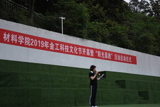 杨陵郧致开幕词,她强调金工科技文化节是充分展示材料学子学科知识、科技创新、体育文化等多方面综合能力的大舞台;“阳光晨跑”体育活动是践行“走下网络,走出宿舍,走向操场”理念的重要体现,希望通过本次活动,师生们能够释放工作、学习中的压力,增强锻炼身体的意识,提高体育运动水平。