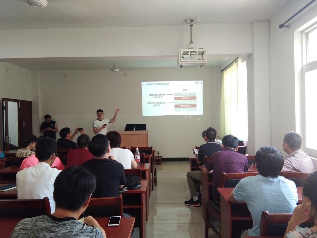 培训老师结合教学案例向参加培训的老师们介绍了“一平三端的混合式金课”是如何在线上线下实现课前发布任务;课中课堂导入、理论验收、实验验收、互动讨论、视频纠错、教师总结;课后讨论、文献阅读、课后作业以及教学考核与评价等功能。培训老师的讲述深入浅出,通俗易懂,使参加培训的老师对“一平三端的混合式金课建设”有了更深入的理解。