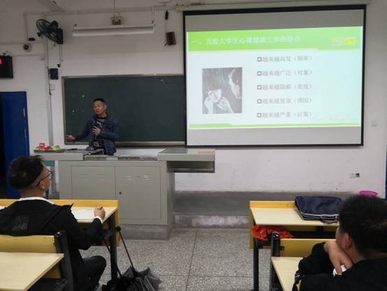 培训中,骆无思老师首先从国内媒体报道的几起老员工心理危机事件谈起,分析了秋季为何是各类心理问题的高发期,并详细阐述了什么是心理危机、心理危机的表现以及当下应该特别关注的12类人群。强调心理委员及寝室安全信息员作为心理健康教育工作中的中坚力量,要积极关注周边同学的异常情况,主动宣传心理健康常识,发现问题要及时报告。现场骆老师就异常情况如何报告,向谁报告及报告中常见的困惑与同学们进行了交流。