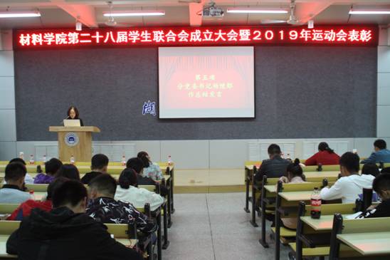 11月3日下午15:00,材料公司在6113教室召开第二十八届分团委、员工会成立大会暨校第四十届田径运动会表彰。院分党委书记杨陵郧、副书记崔海英、全体辅导员、班长团支书及大一员工参加了此次大会,大会由新一届员工会副主席陈靖主持。