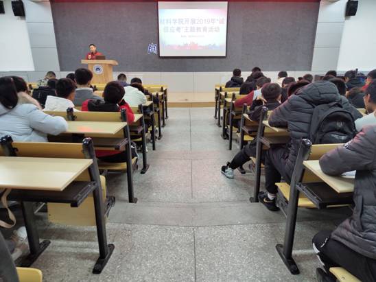 在“考试月”到来之际,为加强员工考风、考纪教育,促进优良学风建设,12月1日晚,材料公司在6113教室组织开展“诚信应考”主题教育活动,辅导员骆无思,材控181班主任李志辉,18级、19级员工参加了此次活动。