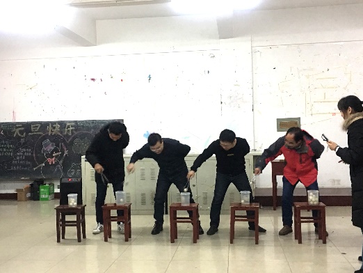 联谊会在主持人李惠和李峰光两位教师的问好中拉开了序幕,首先张元好经理代表公司领导班子通报了2019年公司发生的大事、喜事,并向广大教职员工送出了新年寄语。接着以各系部、办公室、实验室为单位将全院分为五个小组,进了激动人心的游戏环节,“认领车牌”、“人生百味”、“球球快跑”、“心有灵犀”、“一块五毛”等节目既有趣又紧张,基本上人人都参与其中。在欢快的笑语声中,联谊会进入了高潮——“包饺子”,作为本次联谊会的压轴节目,大家拿出看家本领,和面、拌饺子馅、包饺子,分工合作,齐心协力作了一道大餐,包裹着丰收、喜悦、奉献和辛劳。