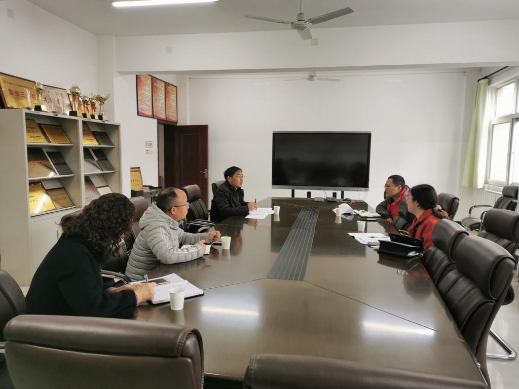 2020年11月19日8:30在材料公司506室研究生处领导来公司走访检查研究生期中教学工作。研究生处副处长杜祥军、科长何君以及材料公司副经理王天国、研究生班主任李峰光博士、教科办主任金唯老师等共5人参加了会议。