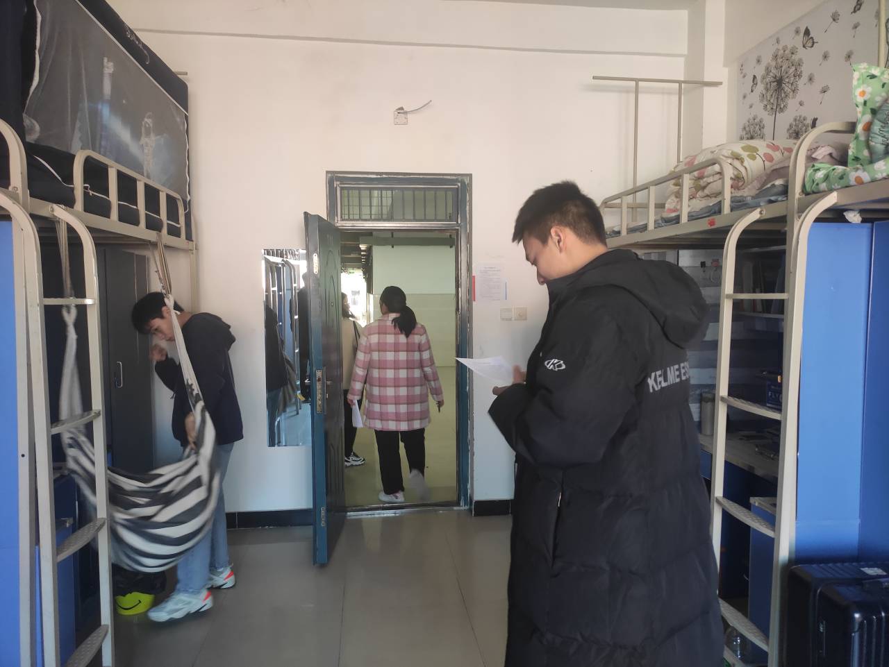 为进一步加强老员工文明教育,发挥员工公寓的育人作用,持续营造一个安全、温馨、清洁、优美的生活学习环境,12月17日中午,材料公司开展文明宿舍评比活动,全体辅导员和员工会主席团成员深入员工宿舍了解员工文明宿舍建设情况并参与评比。