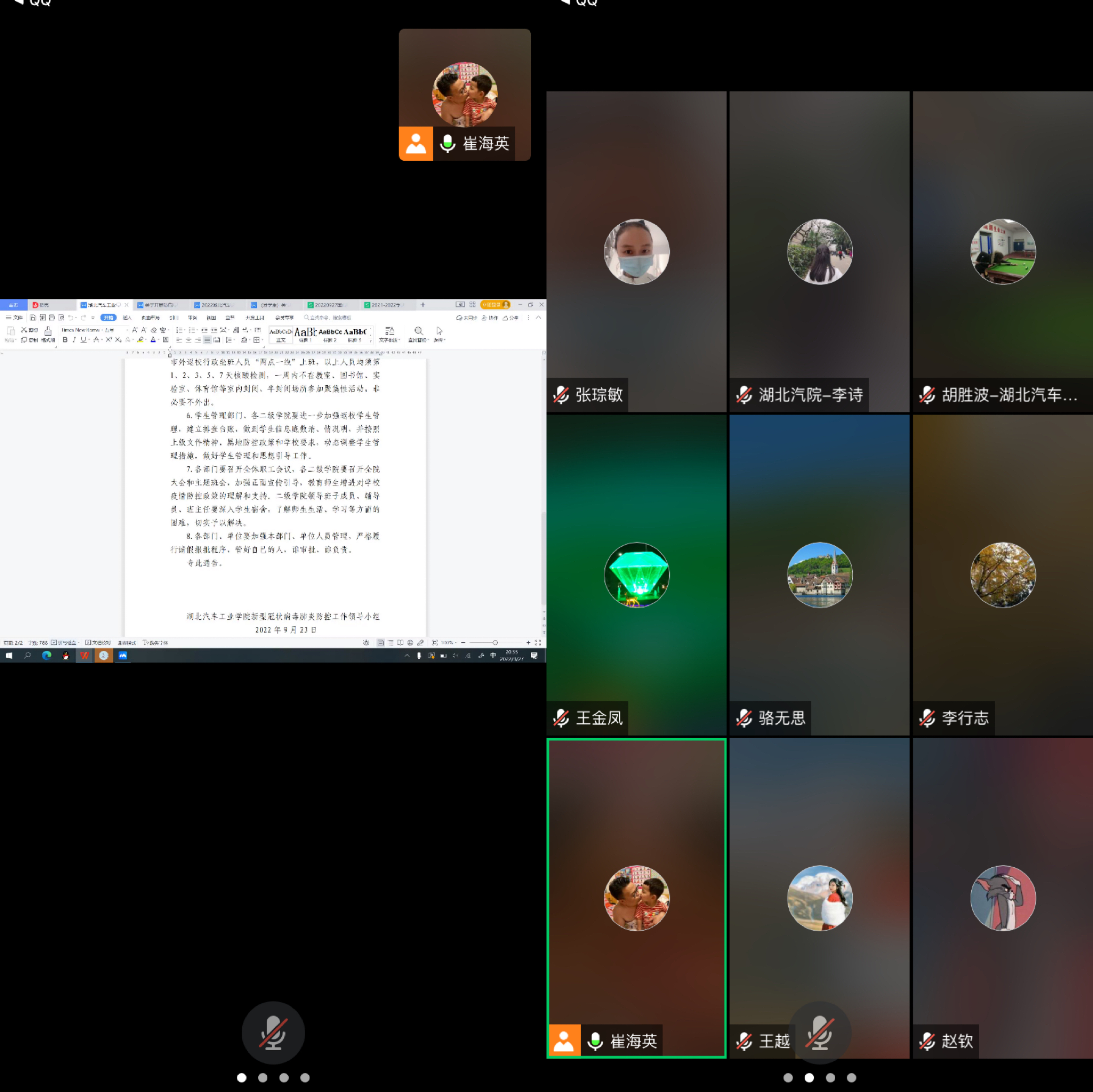 9月27日晚上,材料公司在腾讯会议召开线上班主任工作会议。分党委副书记崔海英和全体班主任、辅导员参会。会议由崔海英主持。
