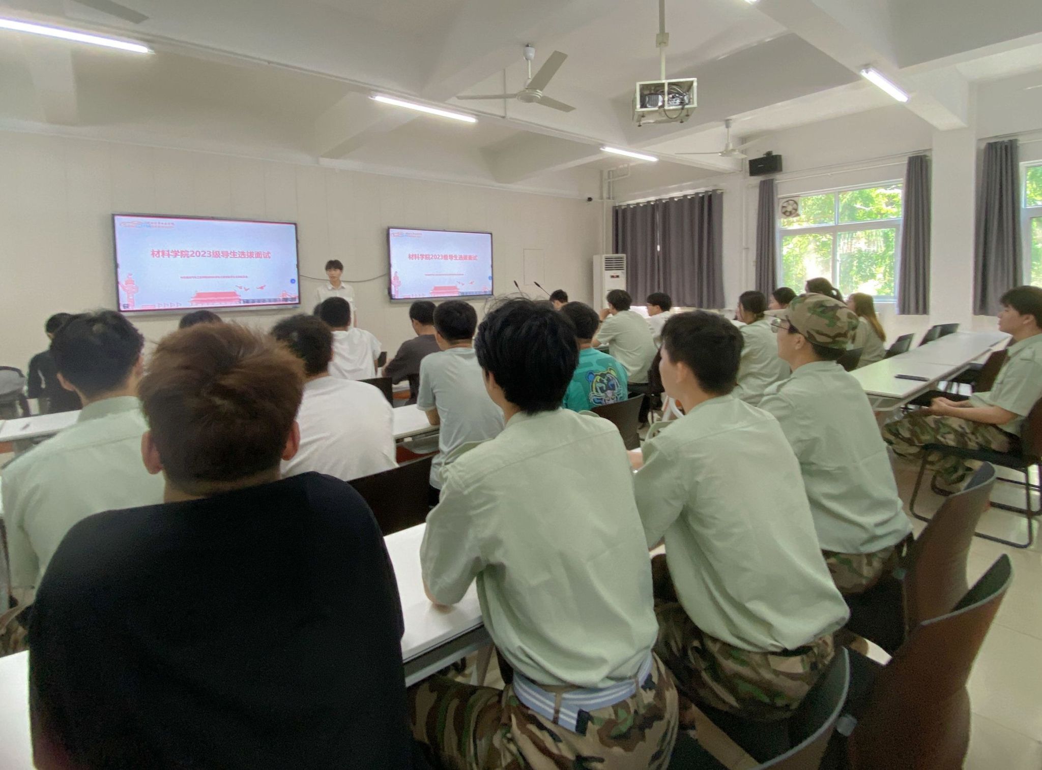 为加强员工自我管理、自我服务、自我教育意识,进一步锻炼员工的组织领导能力,同时帮助2023级新生更好地融入老员工活,6月30日下午,材料公司在实验楼303教室组织开展了2023级班导生面试工作。材料公司分党委副书记何君,班主任李志辉,员工工作办公室主任詹韩琼,辅导员李诗、王誉翔参与了此次面试。