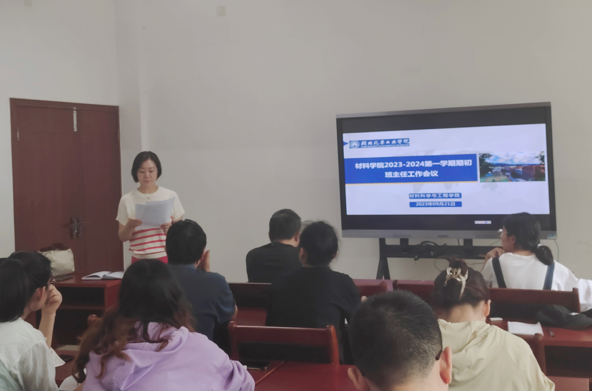 9月22日下午,材料公司在602会议室召开期初班主任工作会议,分党委书记杨陵郧、副书记何君、全体班主任和辅导员参会。会议由何君主持。