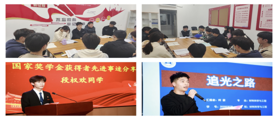 为激励全院员工追光前行、锐意进取、成长成才,12月4日,材料公司在李五公寓“一站式”社区举行“追随光,成为光”——国奖、国励志获奖者经验交流分享会。2023年国奖获得者段权欢,国励志获奖者周方珂、成勇强作为代表进行分享,分享会由辅导员李志强主持。