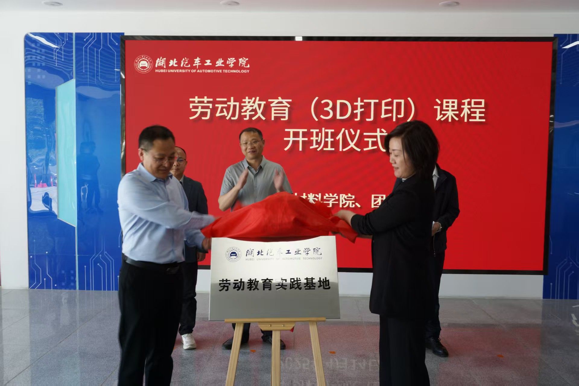 随后,校团委书记杜祥军与公司党委书记杨陵郧共同为“劳动教育实践基地(3D打印工坊)”揭牌。