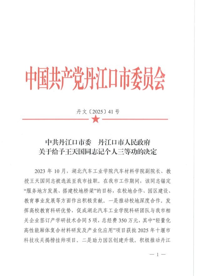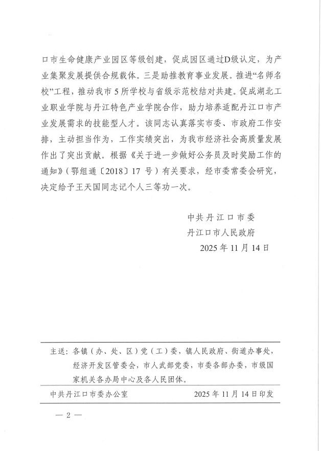 本网讯(文/李亚洲、王天国)近日,丹江口市委、市政府决定,授予公司TapTap副经理王天国教授个人三等功,以表彰其在挂职期间的突出贡献。