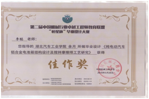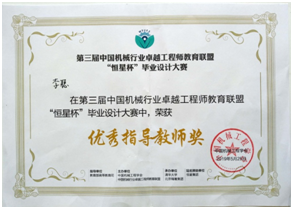 2019年公司毕业设计指导老师参加《第三届中国机械行业卓越工程师教育联盟毕业设计大赛参赛题目征集》获奖情况