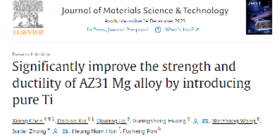 近日,公司青年教师陈祥博士在金属材料领域取得重要研究进展,其作为第一作者的研究成果“Significantly improve the strength and ductility of AZ31 Mg alloy by introducing pure Ti”发表于材料科学顶级期刊《Journal of Materials Science & Technology》(IF:10.9,中科院1区TOP)。该研究由公司联合重庆大学、昆明理工大学、首尔国立大学等国内外知名高校共同完成。