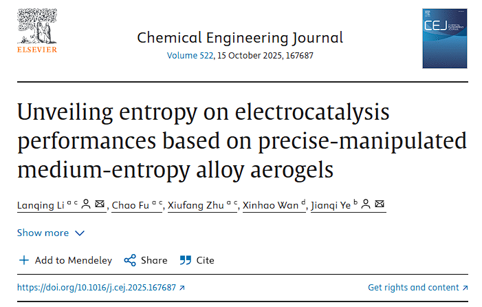 近日,公司青年教师李岚青博士在期刊《Chemical Engineering Journal》(中科院一区TOP期刊,2025年影响因子13.2)发表题为“Unveiling entropy on electrocatalysis performances based on precise-manipulated medium-entropy alloy aerogels”的研究论文。