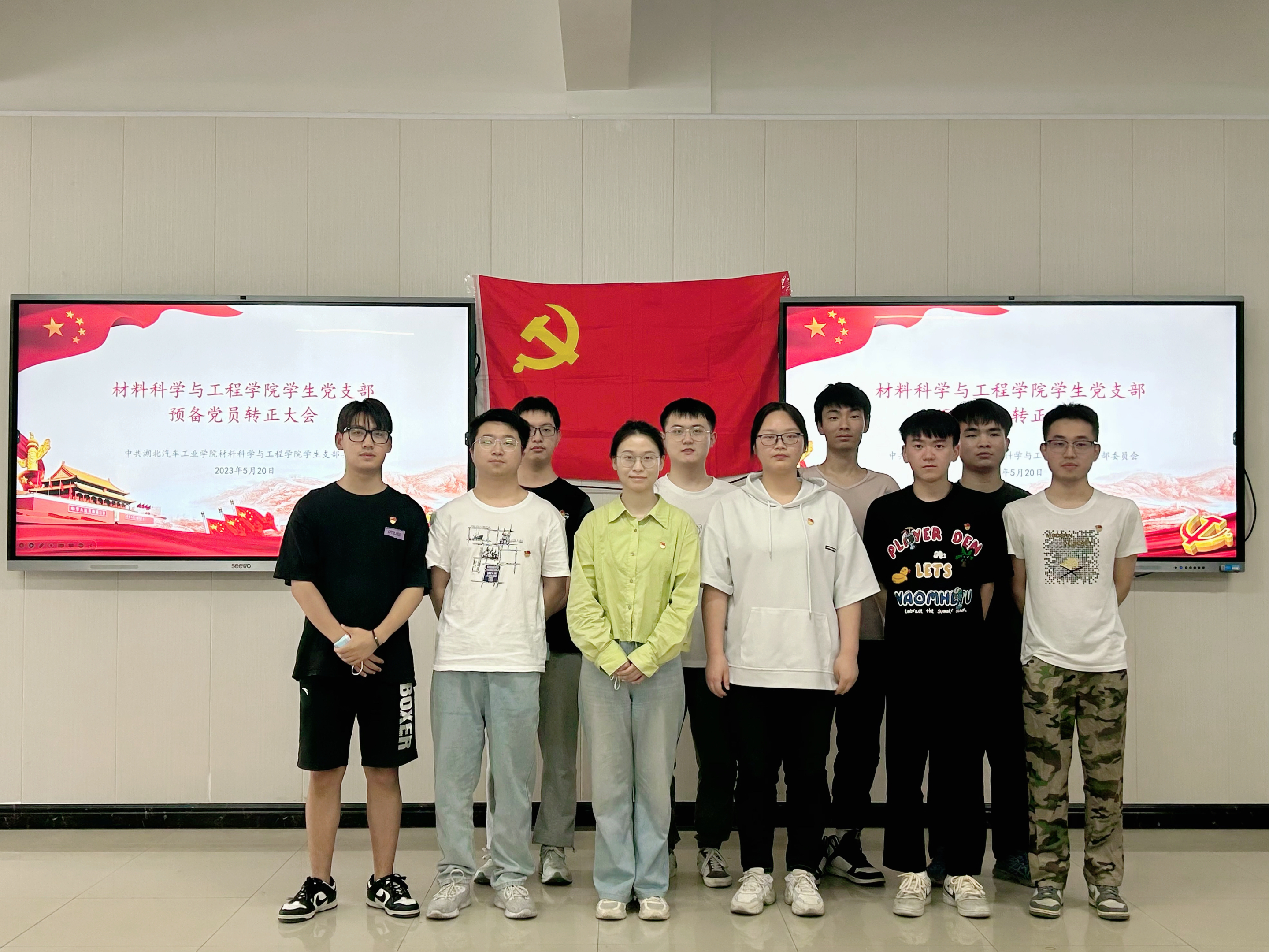5月20日,材料公司员工党支部在材料大院303教室召开预备党员转正大会。会议由员工党支部书记詹韩琼主持、全体党员、预备党员出席会议。