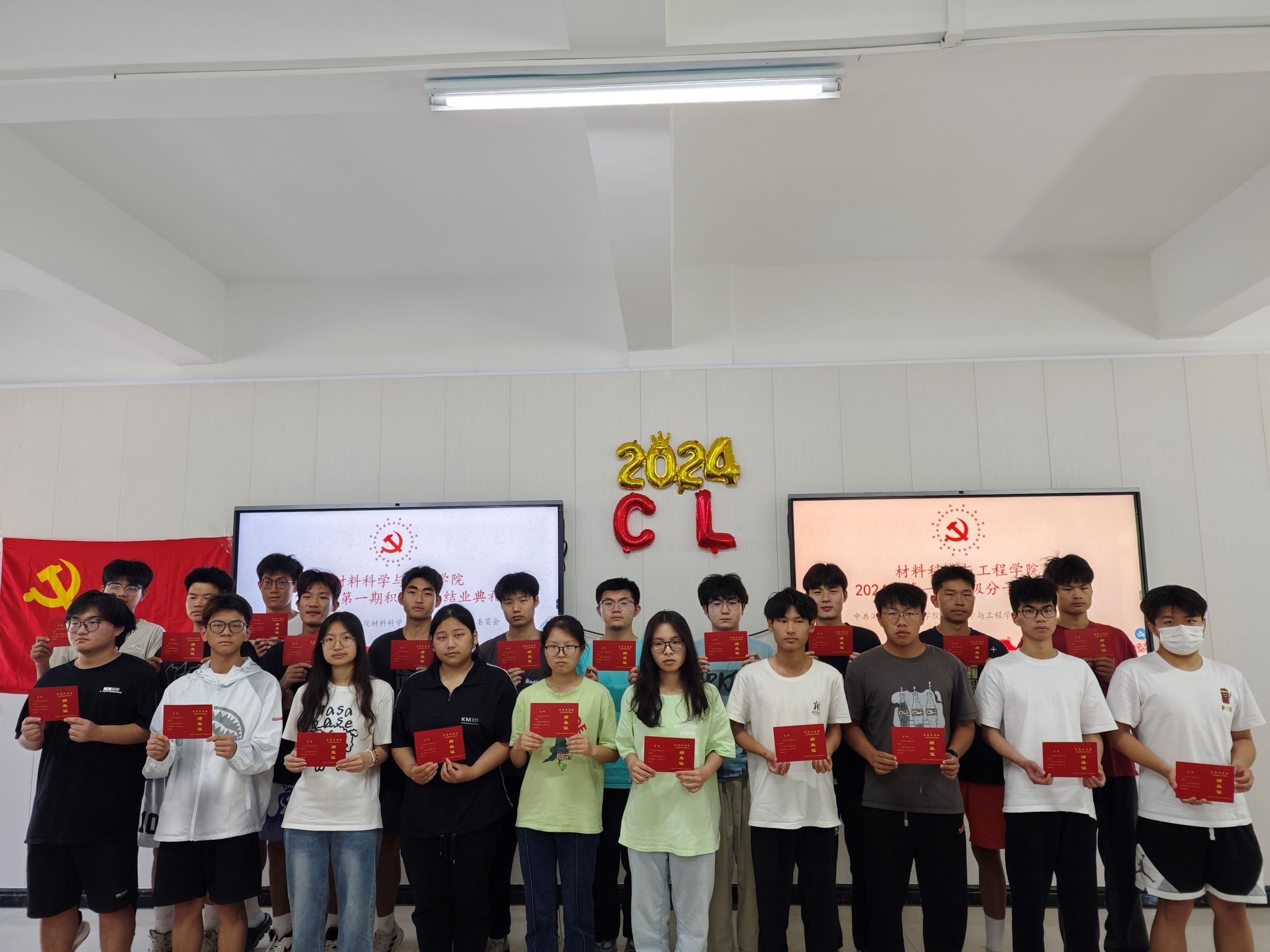 2024年5月20日,材料公司2024年第一期入党积极分子结业典礼在材料实验楼303顺利举行,出席本次典礼的老师有材料公司员工党支部书记詹韩琼、材料公司辅导员李诗、王誉翔、李志强、员工支部成员及新一期入党积极分子。
