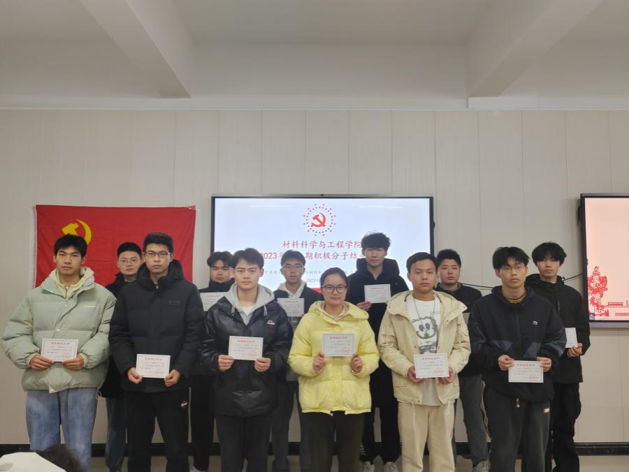 2023年12月12日,材料公司2023年第二学期入党积极分子结业典礼在材料实验楼303顺利举行,出席本次典礼的有材料公司员工党支部书记詹韩琼、材料公司辅导员李诗、王誉翔、李志强、员工支部成员及全体积极分子。
