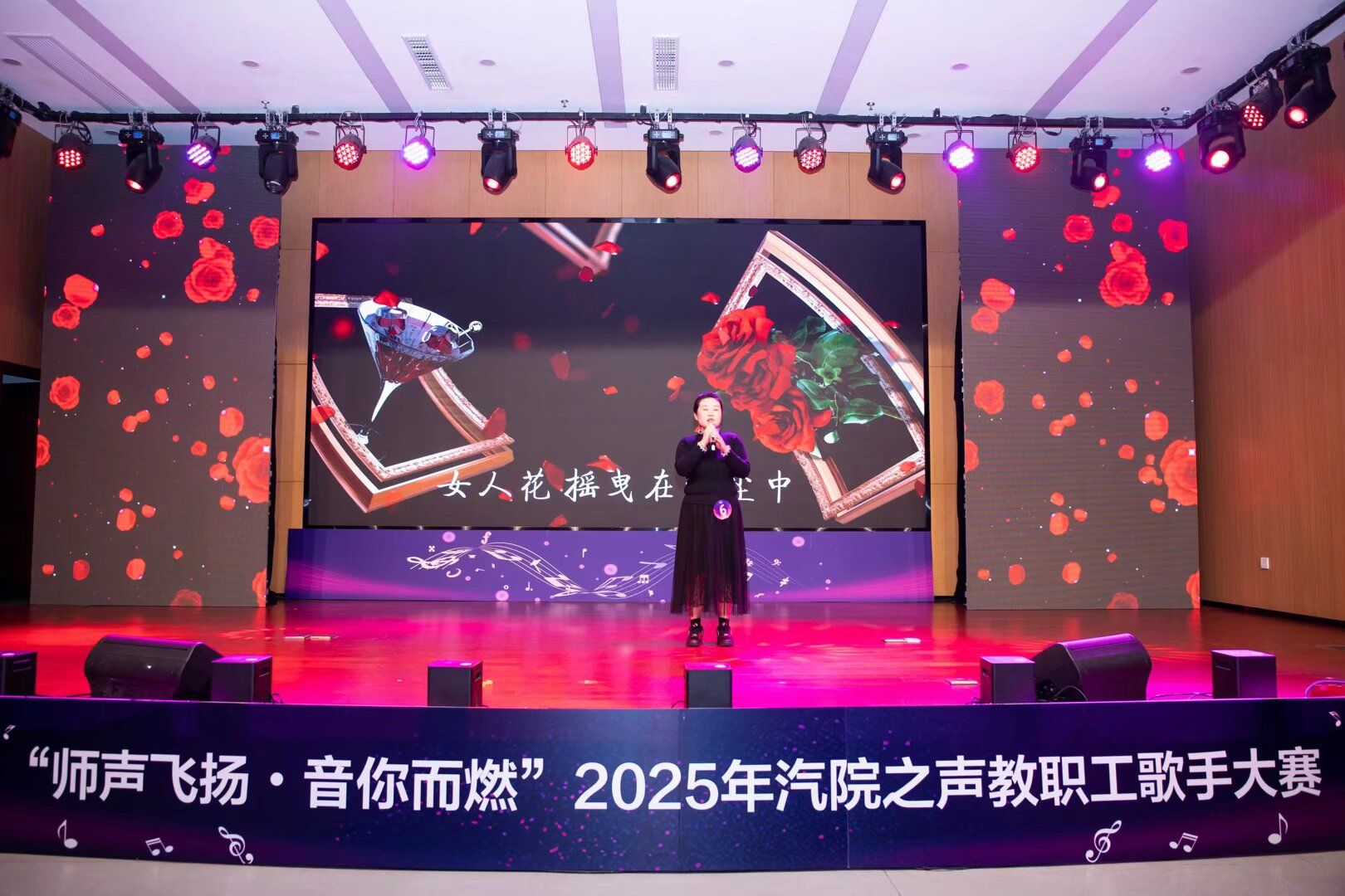 本次大赛高手云集,气氛热烈。当舞台灯光聚焦于若琳时,她以质朴无华的本色和对艺术的热爱勇敢的挑战自我。她选择的参赛曲目是经典歌曲《女人花》。作为一名平日里与公式、代码和实验数据为伴的理工科女教师,她的登场本身就是一种对自我的挑战和对集体荣誉的珍视。