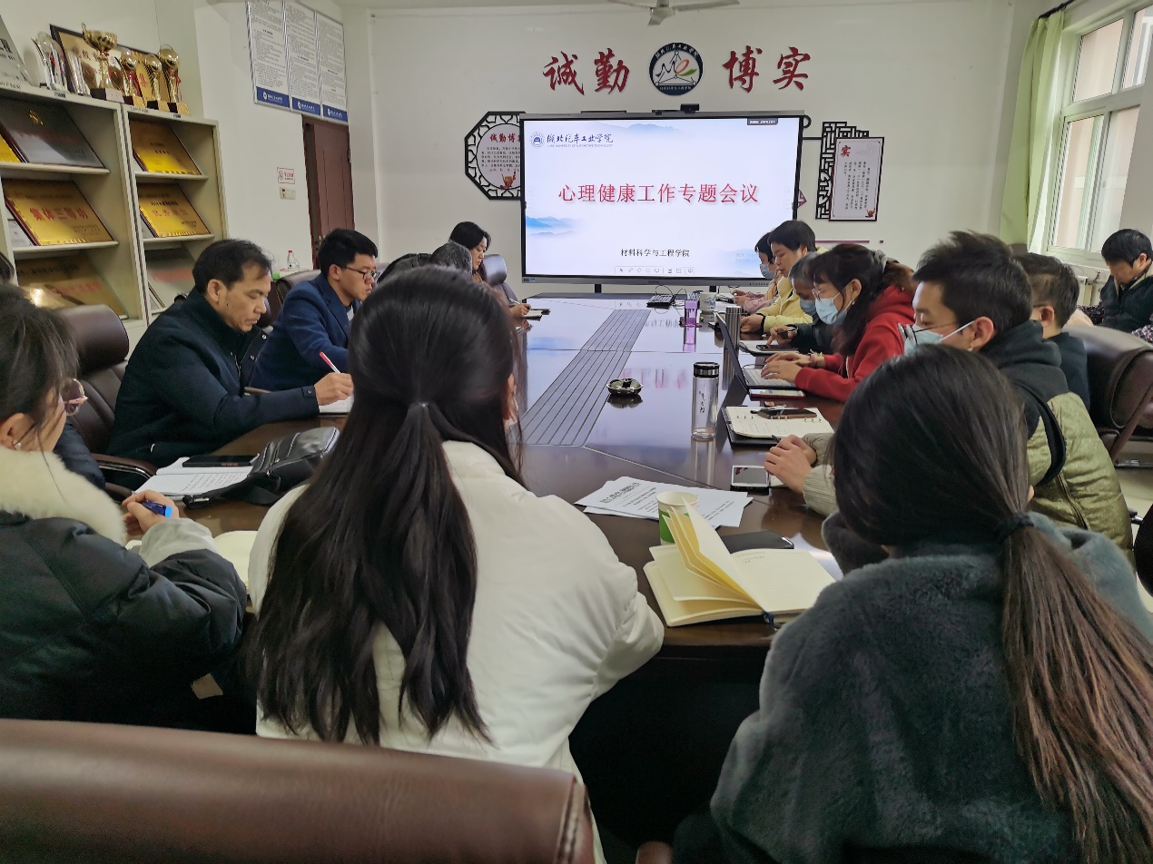 春季开学初,为深入了解、及时掌握员工心理健康状况,提升员工心理健康品质,做到心理问题及早发现、有效预防、及时干预,2月20日下午,材料公司在机材楼506会议室召开员工心理健康教育工作专题会议。分党委书记杨陵郧,全体辅导员、班主任参加会议,会议由副书记崔海英主持。