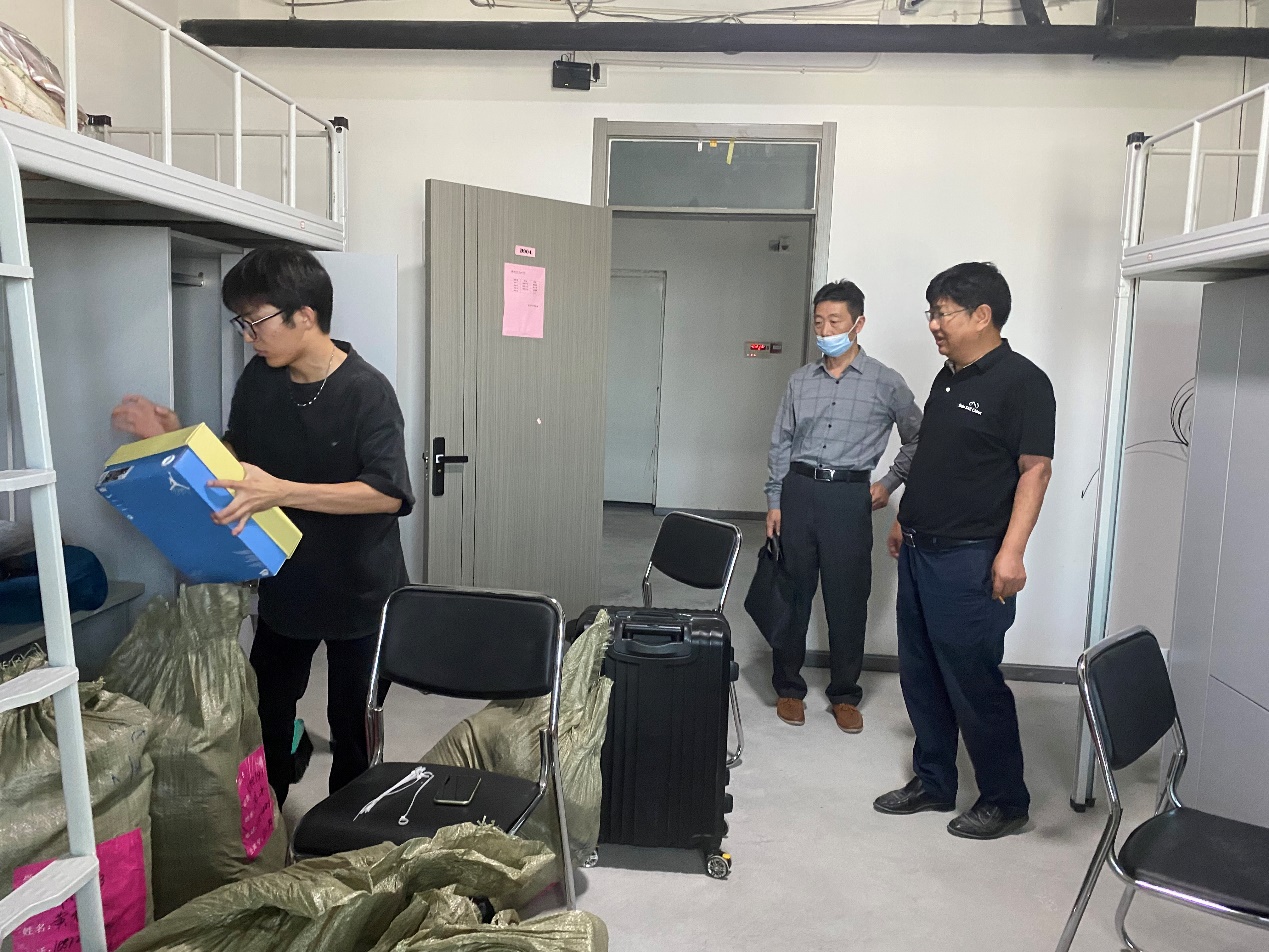 上午八时,在做好校本部员工行李装车和人员清点后,材料公司驻襄阳基地员工随校内大巴车在闭环管理状态下前往襄阳基地。进入基地,在进行完快捷的报道手续后,各位同学开始了忙碌的寝室卫生打扫和行李整理工作,张元好与王誉翔全程协调配合完成材料公司驻襄阳基地员工交接与报道工作,并且深入各个寝室,与同学们展开谈心谈话,对于新宿舍的住宿环境、生活设施和用水用电安全进行了详细了解,切实解决员工的生活问题,激励员工在新的生活环境里努力学习,排除干扰,为2022年秋季招聘做好充足准备,考研的员工好好备战2022年12月的硕士研究生考试。