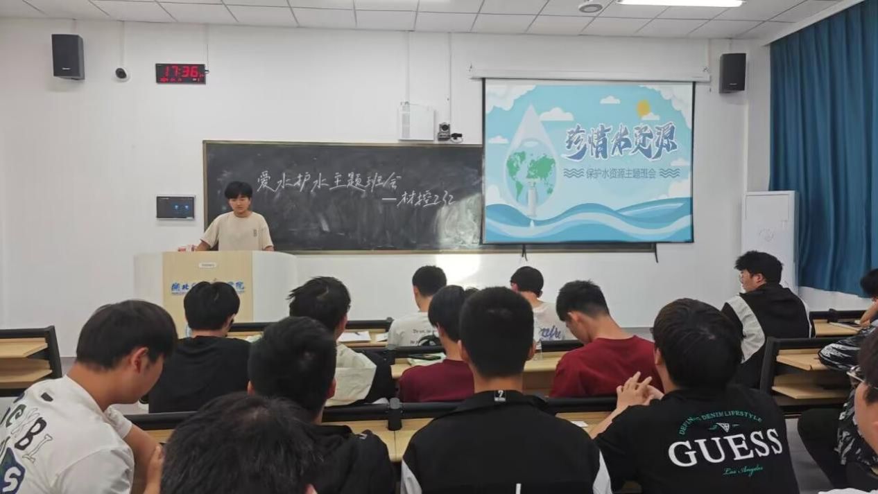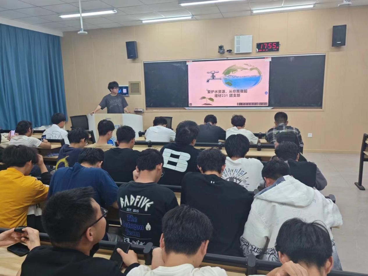 活动在嘹亮的团歌声中拉开帷幕,班主任老师从认识水资源重要性、树立节水意识、节约日常用水等三方面对团员青年爱护水、节约水提出了要求。团支书组织全体青年共同观看节水主题宣传片,深入了解我市水资源现状、节水成效以及节约用水常识。团员代表结合自己生活实际,向大家分享了有趣的节水故事和实用的节水小妙招。