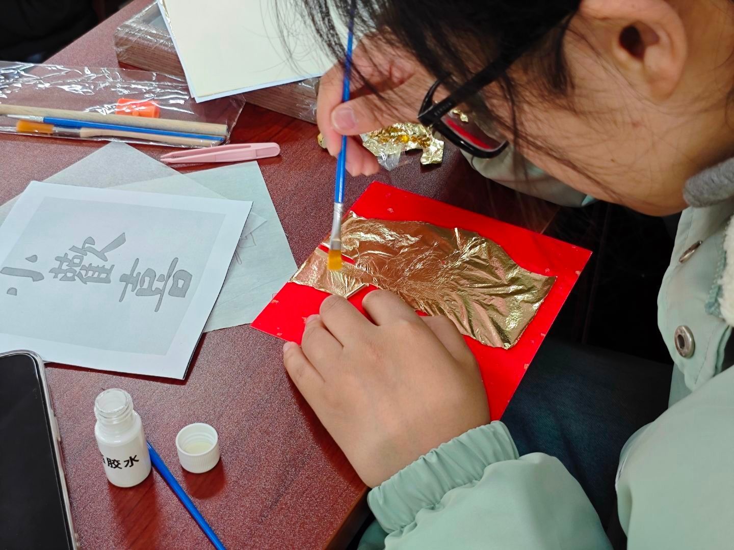 金箔为媒传匠心非遗技艺润心田。金箔锻造技艺是中国传统手工技艺的瑰宝,南京金箔锻制技艺更是被列入国家级非物质文化遗产名录。活动中,员工们以铅笔勾勒创意、以胶水定位匠心,再通过镊子轻拈金箔、软毛刷按压定型,每一步都需专注与耐心。非遗传承实践小组负责人黄煜现场讲解道:“金箔薄如蝉翼,贴金需心手合一,这不仅是对技艺的考验,更是对心性的磨炼。”参与员工彭千慧感慨:“金箔在指尖流转时,仿佛触摸到了千年前的匠人智慧,这种‘慢工出细活’的精神,让我对工匠精神有了更深的理解。”通过沉浸式体验,非遗技艺不再是书本上的遥远符号,而成为鲜活的文化基因,悄然扎根于青年心间。