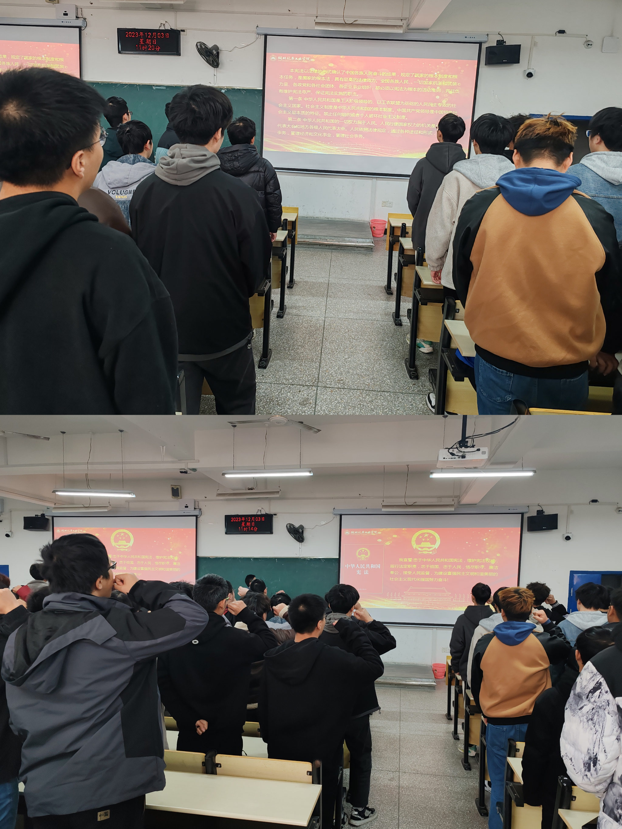 材料公司组织开展2023年国家宪法日“宪法晨读”、“宪法宣誓”活动,组织班级通过普法网收看宪法宣讲网络直播,与会员工一同诵读《中华人民共和国宪法》部分条款,同学们精神饱满、情绪激昂,句句铿锵有力,让宪法“声声入心”。