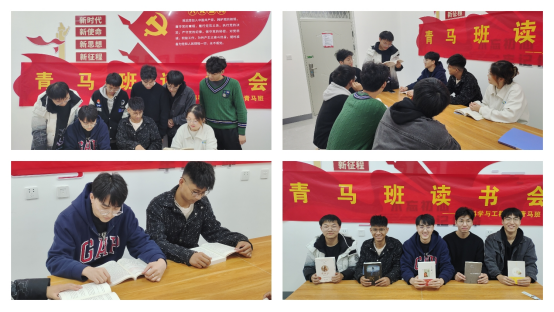 分享会上,青马班学员周方珂领读了《论党的青年工作》,并呼吁广大青年积极投身新时代中国特色社会主义伟大事业,在强国建设、民族复兴伟业中挺膺担当、成长成才。彭千慧同学领读了《习近平著作选读》第一卷,同时号召团员和青年务必不忘初心、牢记使命,务必谦虚谨慎、艰苦奋斗,务必敢于斗争、善于斗争。分享过后,同学们进行组内讨论并发表读书心得。