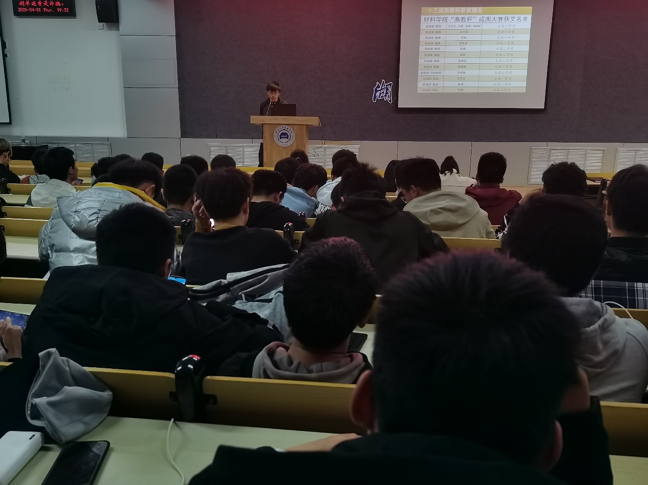 为动员公司员工积极参加科技竞赛,营造浓厚科研氛围,4月1日晚,材料公司在6113教室召开2021年“高教杯”和3D动力大赛宣讲会。金工科协指导老师李怀君、分团委老师骆无思、全体协会成员及参赛同学共200余人参加了宣讲会,会议由协会会长何明智主持。