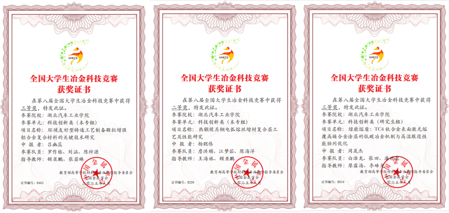 本届大赛共吸引全国93所高校、2384件作品参赛。比赛包括创意设计竞赛、科技创新竞赛、仿真实训竞赛等三个竞赛单元,经过初审、会评,最终公司TapTap学子杨锶伟的《热锻模具钢电弧熔丝增材复合层工艺及性能研究》作品荣获全国二等奖,吕幽蕊的《环境友好型铸造工艺制备颗粒增强铝合金复合材料的关键技术研究》,周晟杰的《绿能熔盾:TC4钛合金表面激光熔覆高熵合金涂层的地毯冶金机制与高温服役性能协同优化》作品喜获全国三等奖。