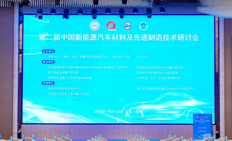 本次会议由苏州大学、魏桥(苏州)轻量化研究院有限公司、武汉理工大学和东北大学联合主办,大会以“材料创新驱动·先进制造赋能”为主题,聚焦新能源汽车车身轻量化、车身成形制造、连接工艺、材料服役安全等轻量化材料与先进制造工艺的前沿领域。
