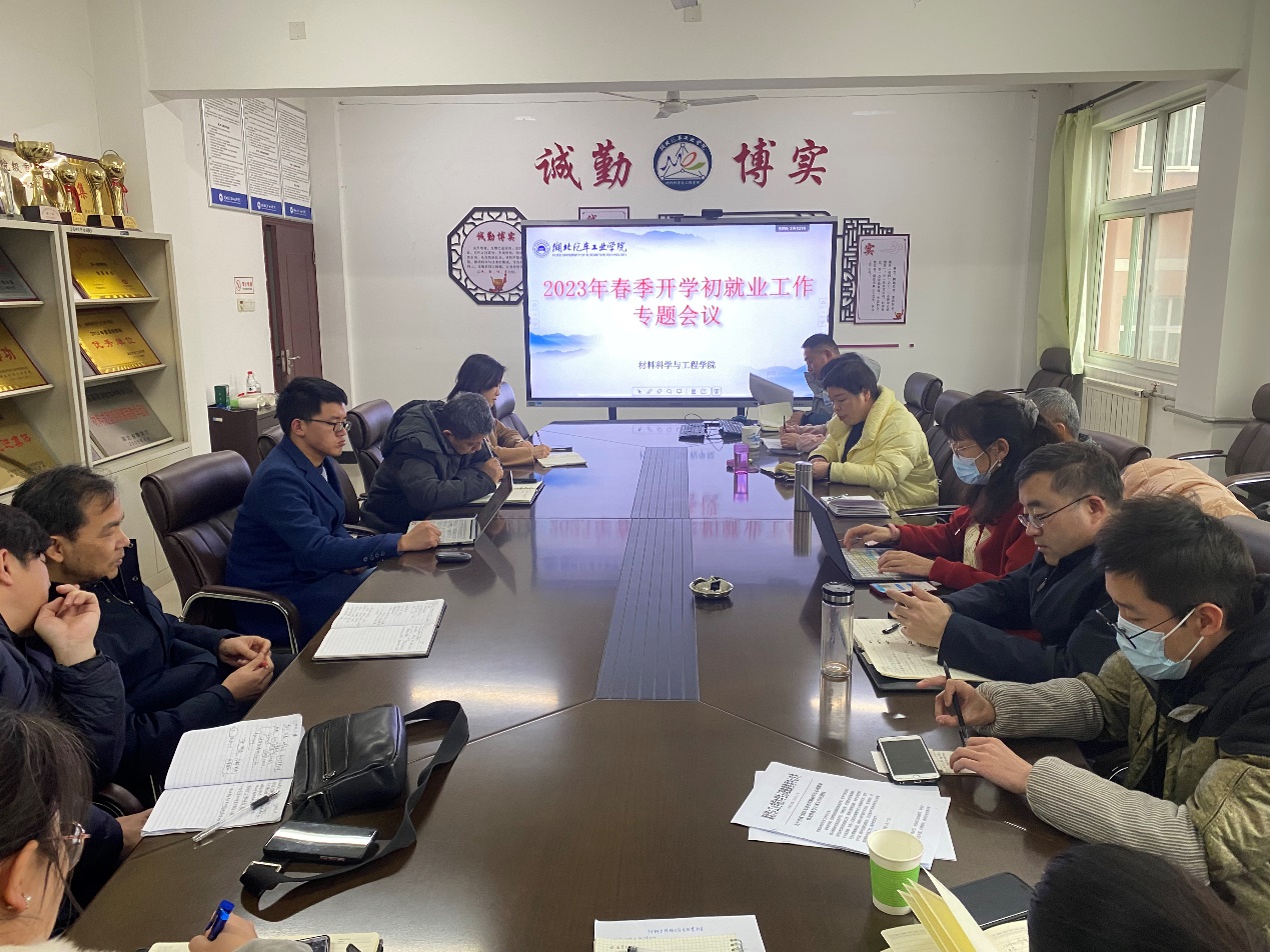 届毕业生就业工作专题会议。材料公司分党委书记杨陵郧,副书记崔海英,学工办全体辅导员,毕业班全体班主任参加了会议。会议由崔海英副书记主持。