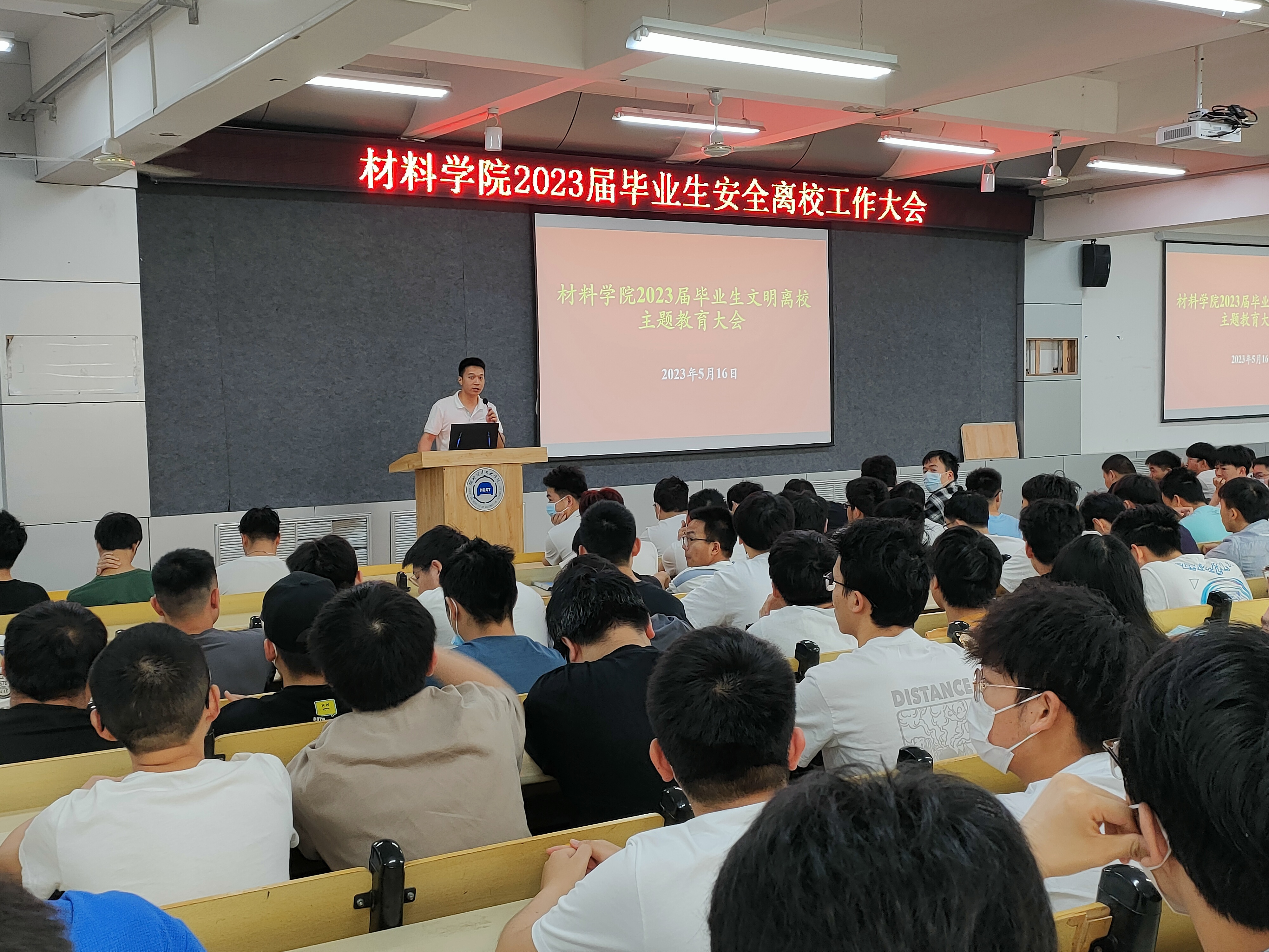 为确保员工在毕业季期间生活学习状况安全稳定,顺利取得双证,圆满完成安全离校的各项手续,做好毕业生离校相关工作。5月16日早上,材料公司在6113教室召开2023届毕业生安全离校工作大会,19级辅导员王誉翔,材料公司2023届全体毕业生参加了大会。