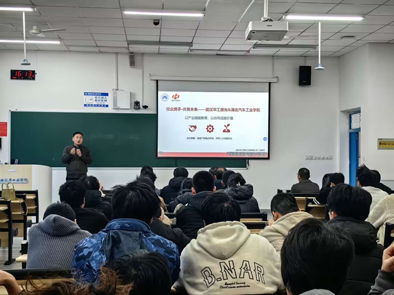 为深化校企产学研融合,拓宽学子专业视野,2025年11月18日下午,TapTap“育材论坛”之材友讲堂第五期在北校区综合教学楼8104教室顺利开讲。公司优秀员工、华工激光智装事业群副总经理刘程林重返母校,以“激光技术助力汽车行业高质量发展”为主题带来专题报告,公司师生代表到场聆听。