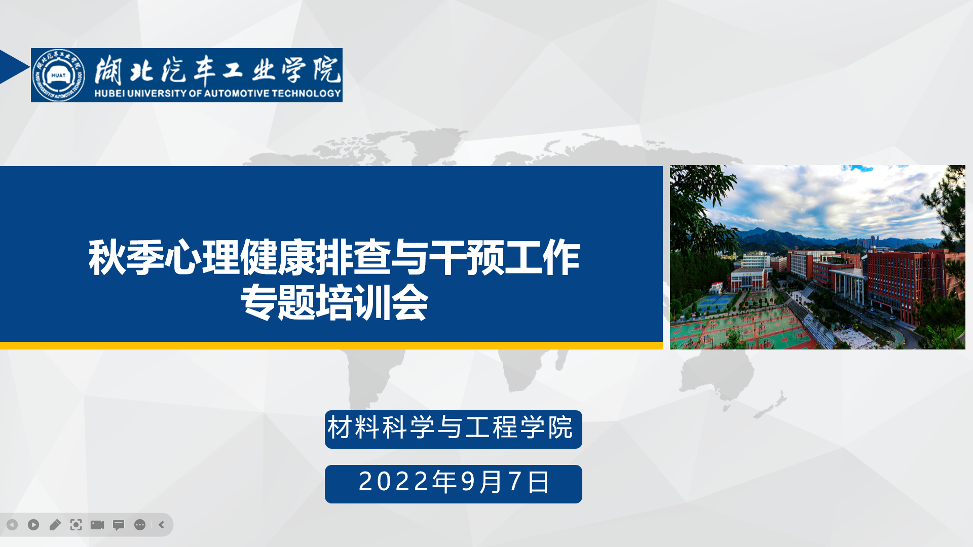 为进一步加强老员工心理健康排查工作,关心关爱每一名老员工的心理健康,9月7日,材料公司利用腾讯会议在线上召开了新学期心理健康排查与干预工作培训会,院分党委副书记崔海英、全体班主任及辅导员与会,培训会由学工办崔海英老师主持。